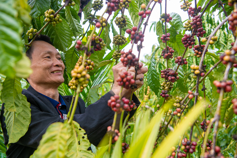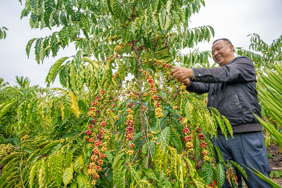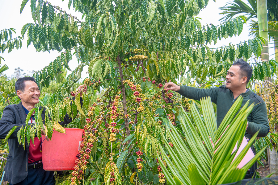 正值咖啡初成熟,1月25日,位于瓊中黎族苗族自治縣黎母山鎮(zhèn)的海南農(nóng)墾母山咖啡標準化咖啡種植基地中,一簇簇咖啡紅果滿掛枝頭,海南農(nóng)墾種植戶穿梭其間忙碌采摘咖啡鮮果。 文/海南日報記者 鄧鈺 圖/海南日報攝影記者 袁琛