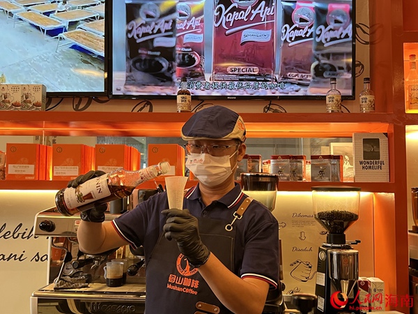 咖啡師在調制“Biang香拿鐵”咖啡。人民網記者 李學山攝