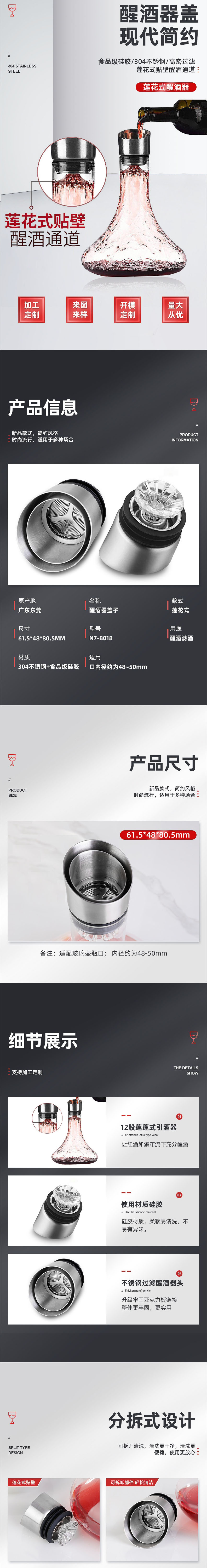 醒酒器蓋,現(xiàn)代簡約。硅膠、304不銹鋼、高密過濾。
